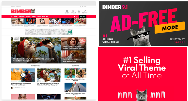 Bimber is a viral magazine theme, that lets you launch a fully functional viral site in no more than 24 hours. It comes with powerful sharing buttons; popular, hot, trending listings and multiple ad locations. Everything in a lightweight and easy-to-use package. Just start today and go viral today!