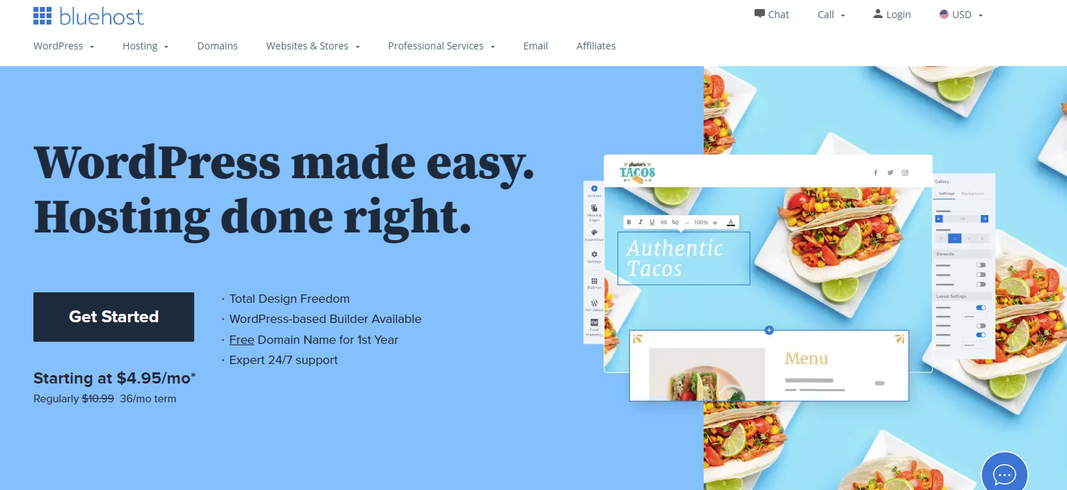 Grab a plot of land and start building. Whether you’re looking to create a website, blog or online store, Bluehost can get you started with a hosting plan tailored to your specific needs. Build your website with WordPress With Bluehost, you get all the benefits of the world’s most popular site builder in a smart, secure, easy-to-use package. With WordPress hosting you get resources and tools specifically designed to help you get the most out of your WordPress website.