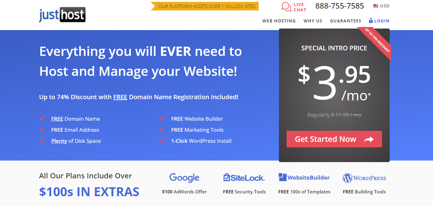 Everything you will EVER need to Host and Manage your WordPress Website with Upto 74% Discount with FREE Domain Name Registration Included. Many web hosts seem identical on the surface, offering disk space, bandwidth, email, site builders and 24×7 support… but these are only a fraction of the benefits you’ll enjoy when you host your website with Just Host.
